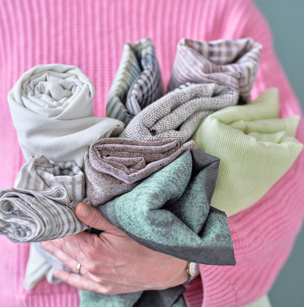 Tkanina to serce rolety rzymskiej – od niej zależy, jaki klimat stworzymy w Twoim wnętrzu. Dlatego nie wybieram „czegoś z katalogu”, tylko wspólnie z Tobą szukam tego, co najlepiej odda charakter Twojej przestrzeni. Mam len, który pięknie łapie światło i nadaje lekkości, welur, który wnosi miękkość i elegancję, klasyczną bawełnę – ponadczasową i uniwersalną, a także blackouty – kiedy potrzebujesz odciąć się od świata i światła. Lubię, gdy możesz dotknąć materiału, zobaczyć, jak pracuje w naturalnym świetle. Zabieram ze sobą próbki i pokazuję, co z czym gra, a co niekoniecznie. Zdarza się, że klienci zakochują się w fakturze albo odcieniu, którego wcześniej sobie nie wyobrażali. To dla mnie najfajniejszy moment – kiedy tkanina zaczyna „mówić”. Wiem, że oprócz wyglądu liczy się też funkcja – w kuchni szukamy czegoś łatwego do utrzymania w czystości, w sypialni ważna jest miękkość i wyciszenie, a w salonie… no cóż, tu liczy się efekt „wow”. Tkaniny, które proponuję, pochodzą od sprawdzonych dostawców z Polski i Europy. Są trwałe, pięknie się układają i naprawdę robią różnicę. Jeśli nie wiesz, od czego zacząć – spokojnie. Ja wiem. I pomogę Ci znaleźć tę jedyną, idealną tkaninę.
