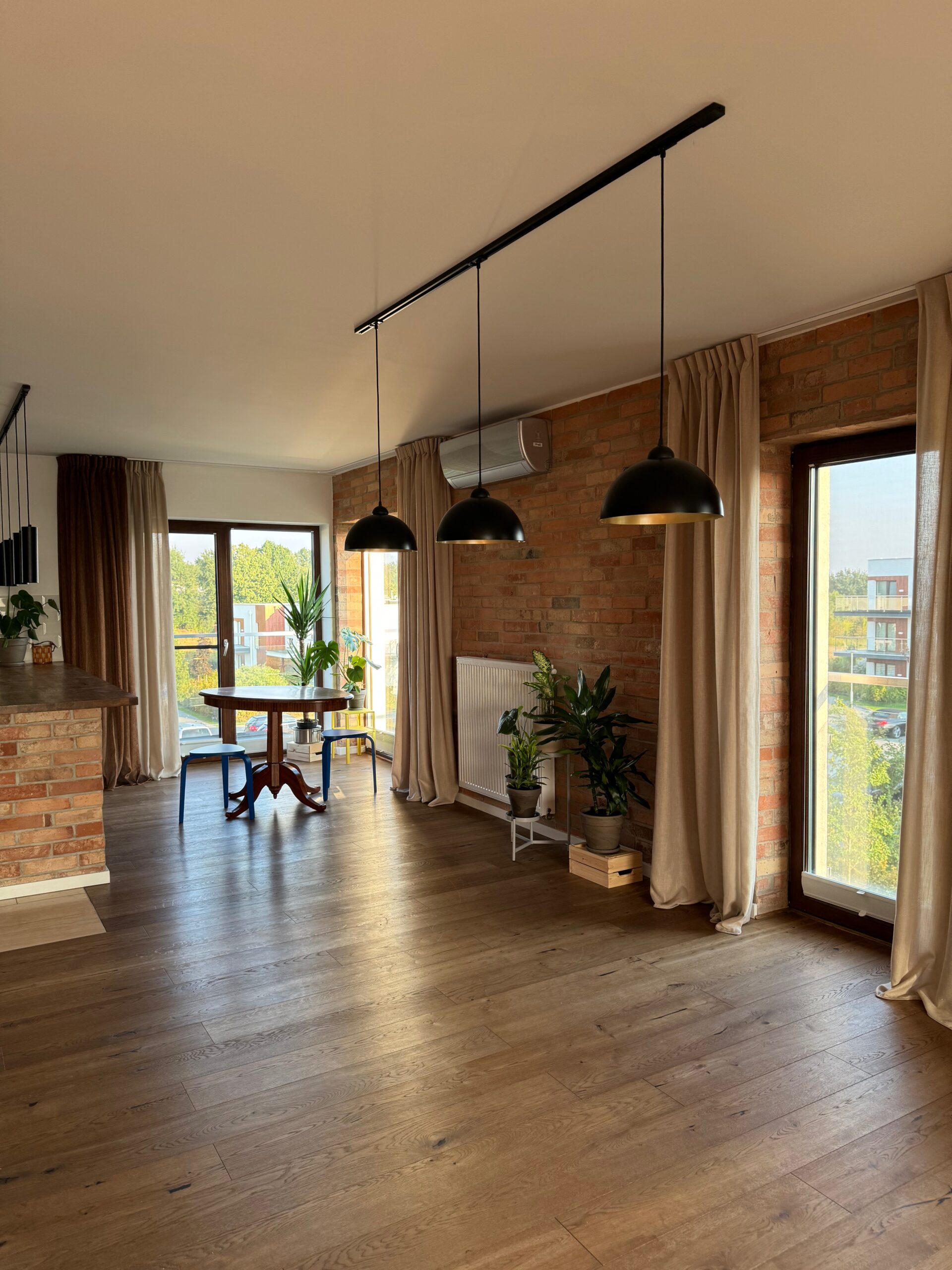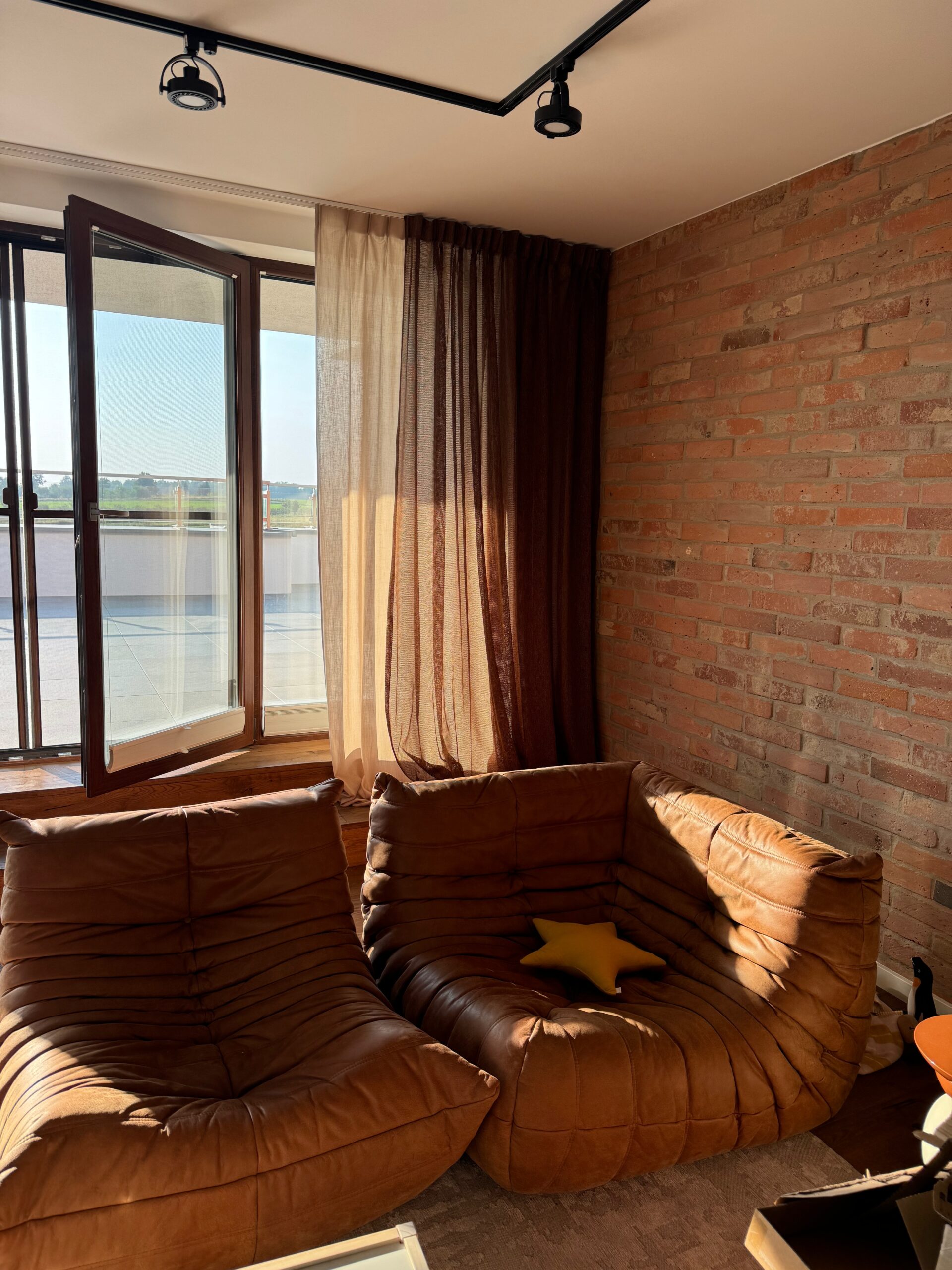 Realizacja w samym sercu Nałęczowa znajduje się wyjątkowy apartament, gdzie industrialna estetyka spotyka się z ciepłem i komfortem. Wnętrze zaskakuje oryginalną aranżacją – surowa cegła i skórzane akcenty budują charakter przestrzeni, a firana z miedzianej siatki oraz zasłony z naturalnego lnu nadają jej miękkości i przytulności. Warstwowe tkaniny filtrują światło, tworząc nastrojowe wnętrze, idealne do wypoczynku.